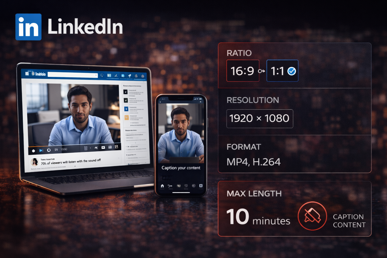 16:9 works well for longer-form content — tutorials, case studies, documentary-style clips — because most LinkedIn viewing happens in a browser. For shorter clips intended for the mobile feed scroll, 1:1 square is the safer choice: it fills more of the mobile display without the black-bar problem that 9:16 creates for desktop viewers.