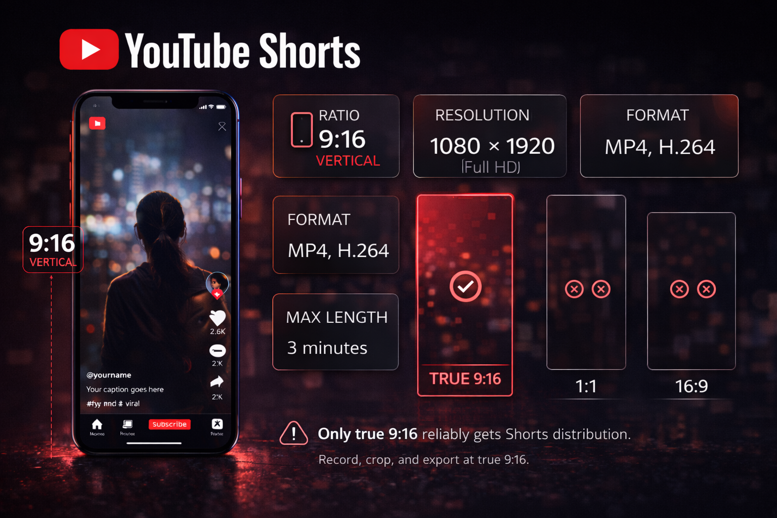 | YouTube Shorts | 9:16 | 1080 × 1920 | 3 min | MP4 |