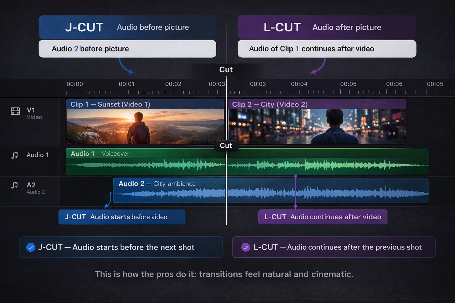 This is why directors shoot movement deliberately. "Walk into frame, we'll cut on the walk" is one of the most common instructions in video production because it gives the editor somewhere to hide the cut.