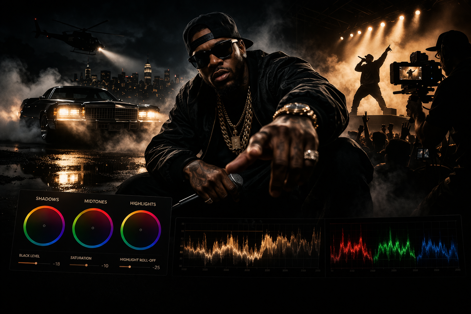 There's a shot in a hip-hop video that's been colour graded so many times it's basically a genre requirement now. Deep blacks. Skin tones pushed slightly warm. Highlights slightly crushed so nothing blows out. You've seen it a thousand times without knowing you were seeing it.