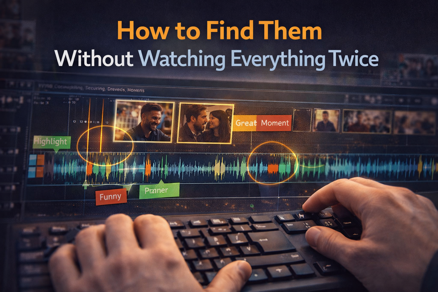 Open your footage in your editor and look at the audio waveform before you play anything. The peaks tell you where the energy is — where something is happening, where someone is speaking clearly, where there's silence. The best clips almost always sit at or just after a waveform peak. Mark those sections first, then only watch those.